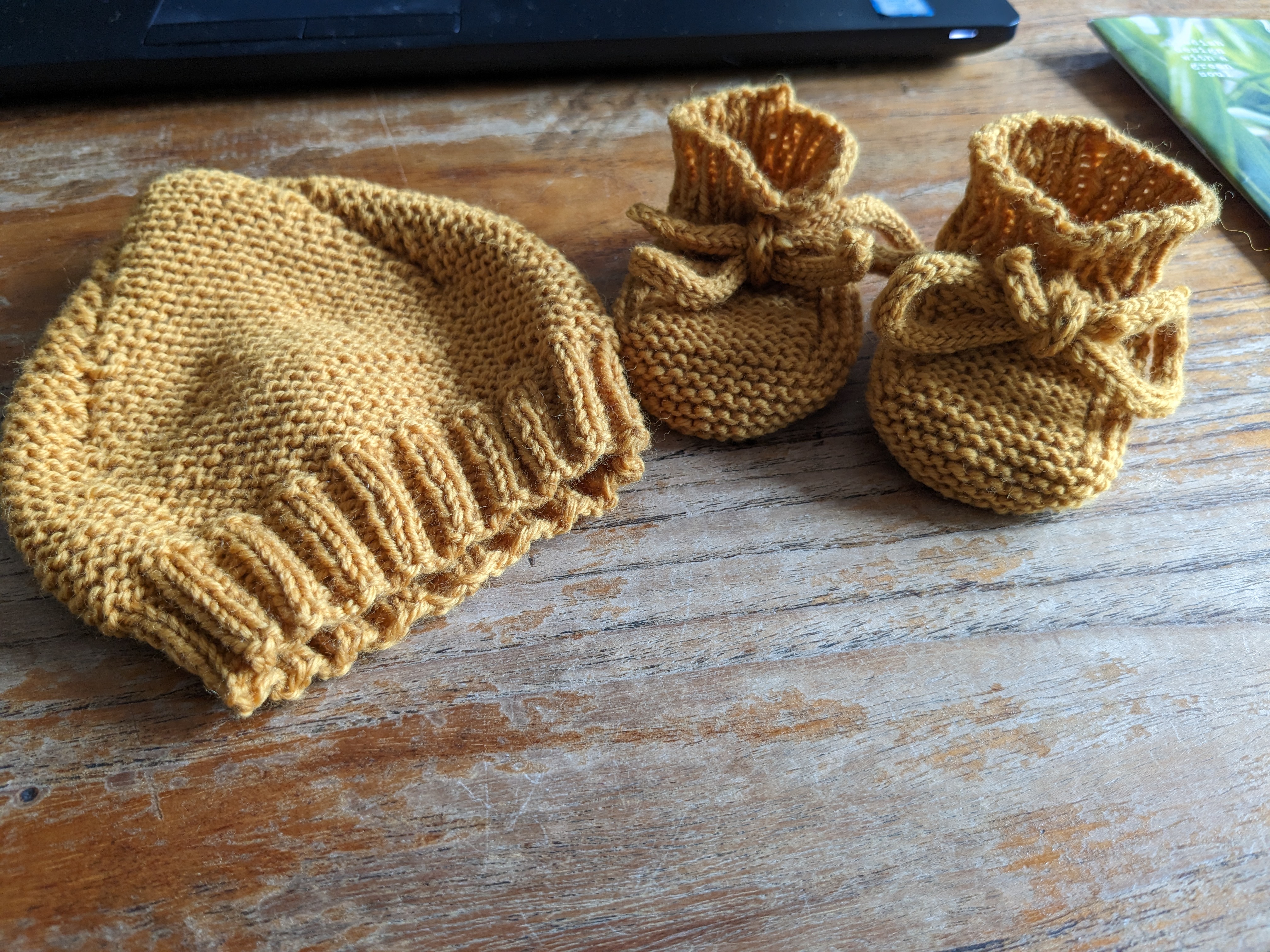 Hele grote projecten doe ik alleen voor mezelf, maar voor babykleertjes kan je bij me terecht! Wil je een leuk handgemaakt kraamcadeautje? Ik kan passende slofjes en mutjes maken, of een broekje of vestje breien. Neem even contact op bij interesse!